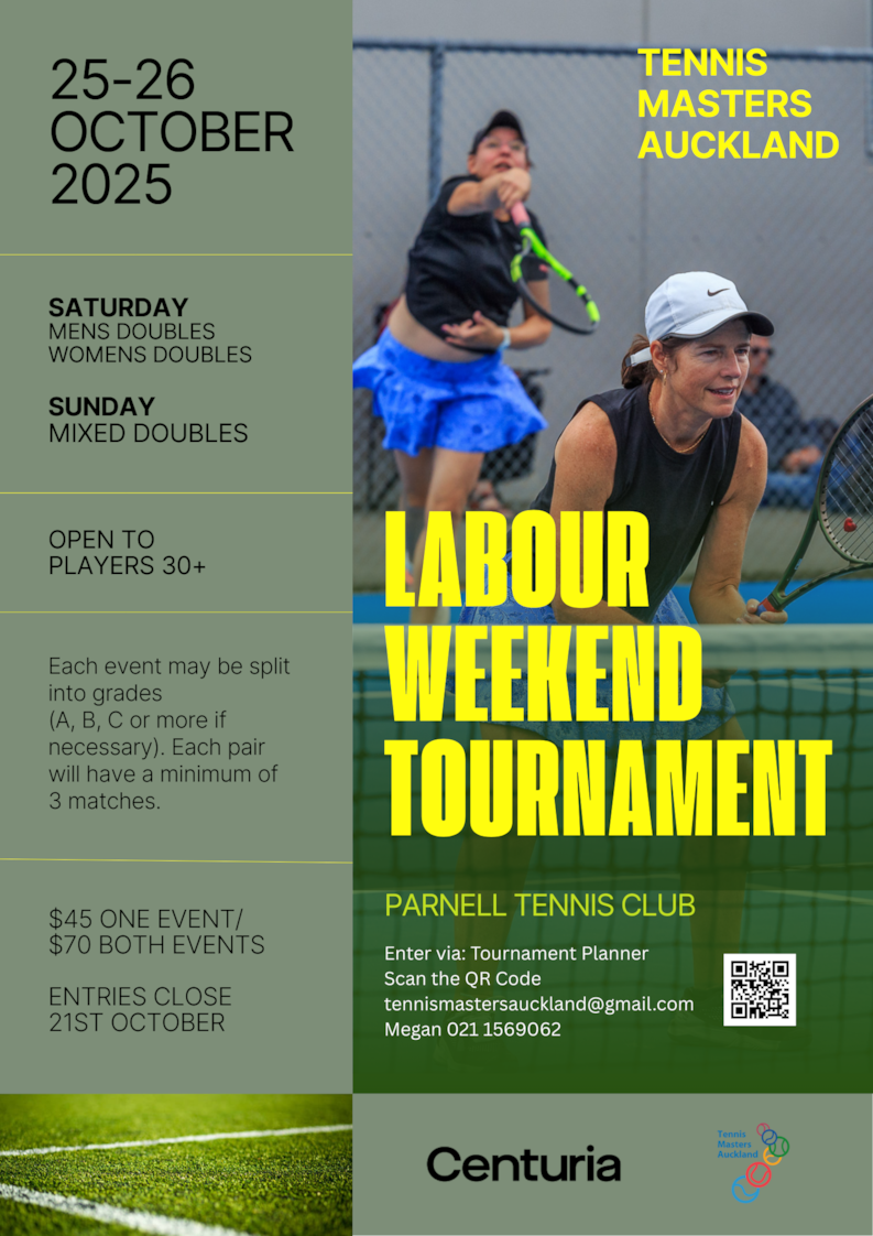 Tennis Masters Auckland Labour Weekend Tournament at PLTC
